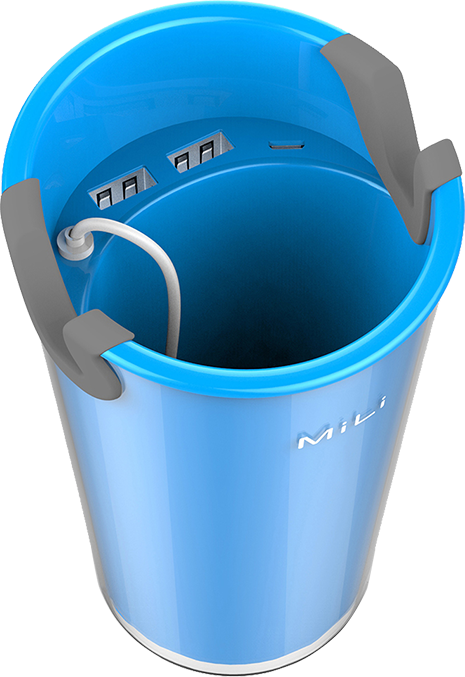 杯內側設置三個輸出接口,外設一個輸出接口含Micro USB、USB等主流輸出口,兼容90%以上的數(shù)碼產(chǎn)品
